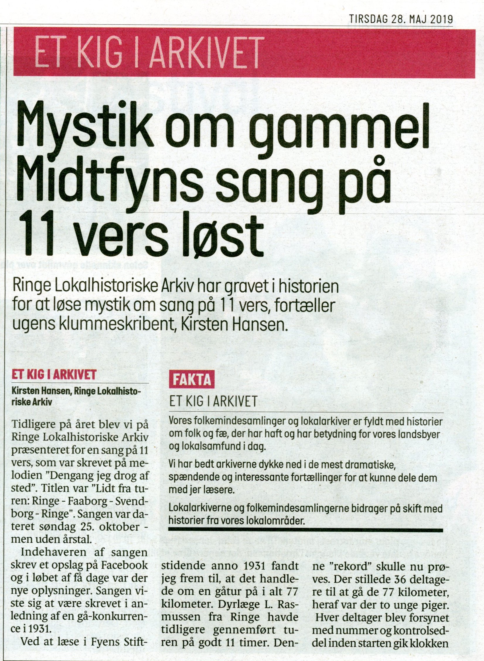 Lørdagsåbent den 30. maj kl 10.00 – 13.00 på Ringe Lokalhistoriske Arkiv. Det er samtidig med foreningernes dag. Vi har kaffe på kanden